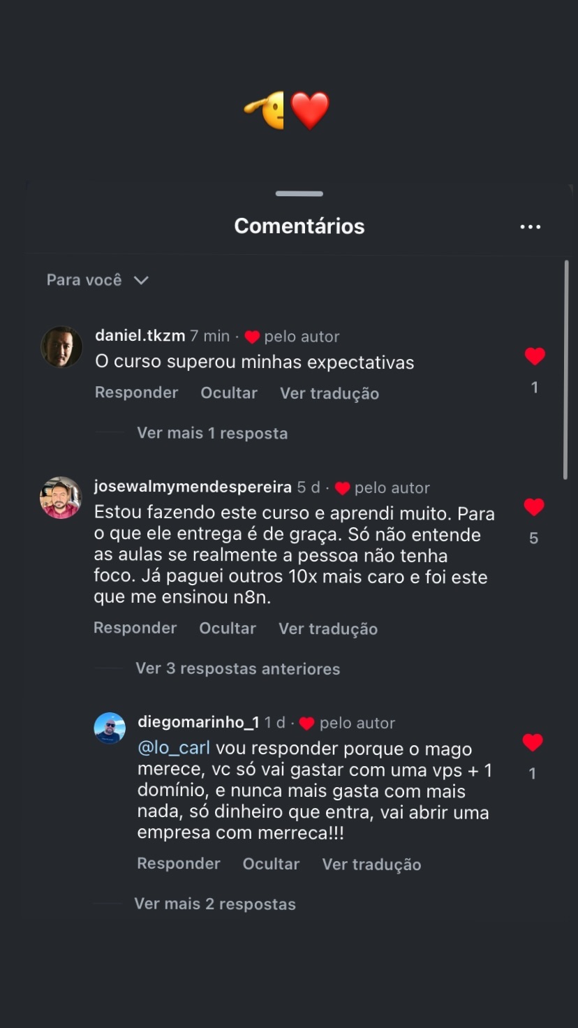 Sim! Você pode eliminar esses gastos e economizar pelo menos R$ 57.000 por mês, substituindo ferramentas pagas como Make, Z-Api e BotConversa por soluções mais avançadas e sem mensalidade, como n8n, Typebot e Evolution API, e + de 65 Ferramentas. No curso, você aprende a criar sua própria estrutura, sem depender de plataformas caras, e mensalidades!
